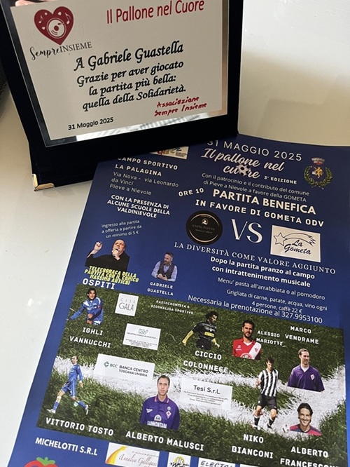 Sabato 31 Maggio 2025 ho partecipato a “Il Pallone nel Cuore”, evento organizzato dall’Associazione Sempre Insieme con la collaborazione di Andrea Testi Management, che si è svolto presso il Centro Sportivo “La Palagina” a Via Nova. Sono davvero onorato di aver ricevuto l’invito a partecipare, e voglio anzi esprimere tutta la mia stima assoluta per gli organizzatori di questa iniziativa e per le attività portate avanti con tanto amore dall’Associazione Sempre Insieme.